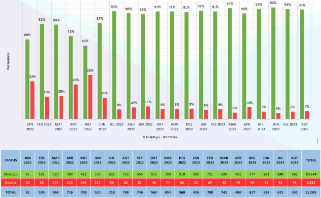 Status Permohonan SBUPemohon SBU Per ProvinsiPermohonan Berdasarkan KualifikasiPermohonan Berdasarkan SubklasifikasiPenyebab Penolakan SBU Grafik Status Permohonan SBU Bulan Januari 2022 -November 2023 Permohonan SBU pada bulan November 2023 menurun dari bulan sebelumnya dengan total 693 subklasifikasi yang telah diputuskan; Persentase penolakan pada bulan November 2023 tidak ada pergerakan dibandingkan dengan bulan sebelumnya. Permohonan SBU yang disetujui…